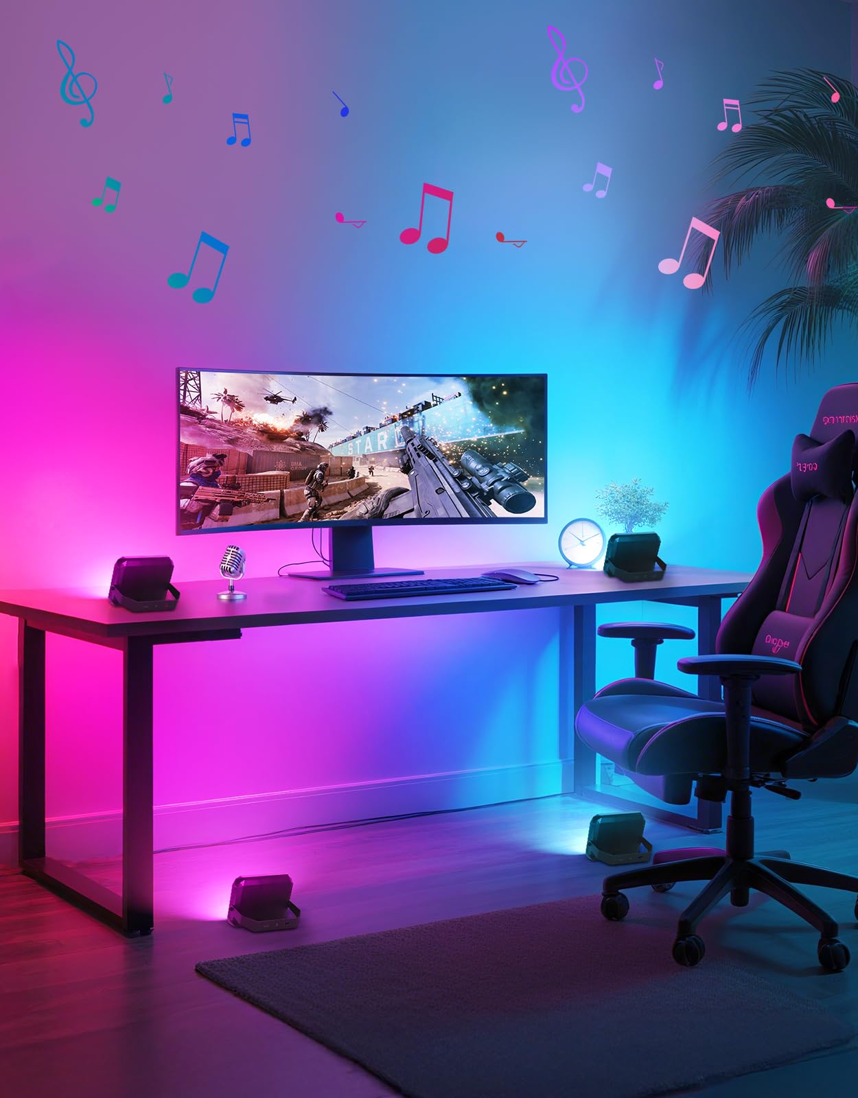 Sincronía musical: cambia de color al ritmo de la música en tiempo real, con 44 modos de escena preconfigurados y la posibilidad de crear tus propios efectos.